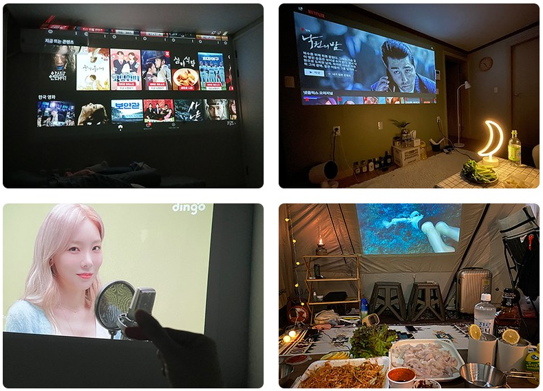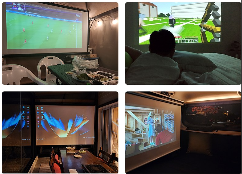 이 제품은 크기가 작고 휴대성이 뛰어나 다양한 상황에서 활용할 수 있습니다. 가정에서 TV 대신 사용하거나, 야외 활동이나 캠핑 시 영화 감상에 활용할 수 있습니다. 또한 회의실이나 강의실에서 프레젠테이션 용도로도 사용할 수 있습니다.