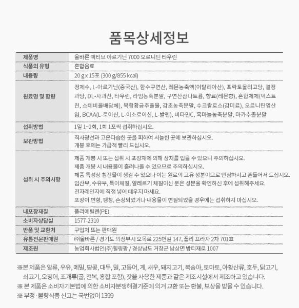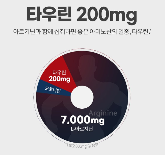 이 제품은 아르기닌, 오르니틴, 타우린 등 주요 성분들을 적절히 배합하여 신체의 활력을 높이는데 도움을 줍니다. 특히 아르기닌 7000mg의 고함량 배합으로 더욱 효과적인 에너지 생성을 돕습니다.