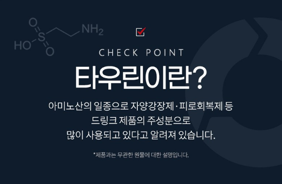 타우린은 항산화 작용과 에너지 대사 촉진에 도움을 주는 아미노산의 일종입니다. 심장 기능 개선과 운동 수행 능력 향상에 도움을 줄 수 있어, 운동을 즐기는 사람들에게 특히 유용합니다.