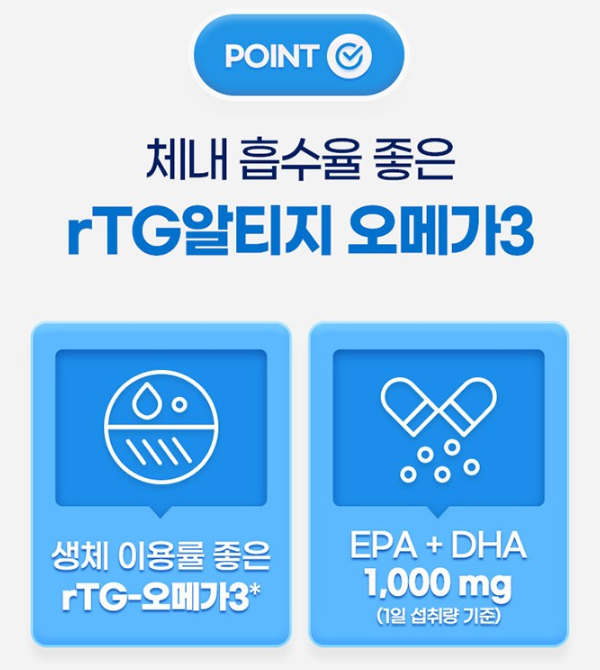 GNM자연의품격에서 출시한 rTG 알티지오메가3는 고품질의 오메가3 건강기능식품입니다. 이 제품은 EPA와 DHA가 풍부하게 함유되어 있어 심혈관 건강과 두뇌 기능 개선에 도움을 줄 수 있습니다.